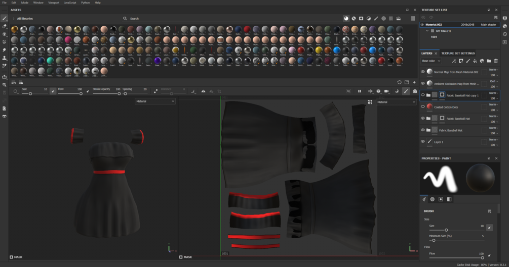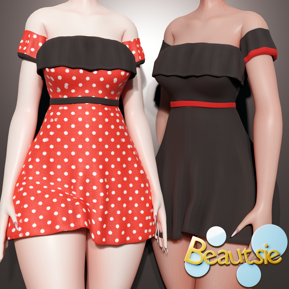 Ruffle dress with premade base assets and Substance File for you to make your own texture sets with.